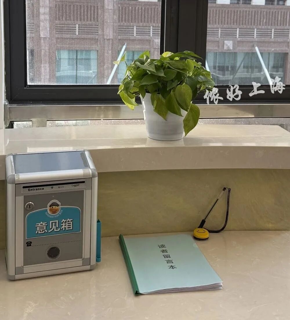 因为最早的时候,留言簿和意见箱是放在服务台这里,旁边坐着工作人员的。去年,我们图书馆进行了一次修缮,在8月份重新开馆。留言簿和意见箱也换了地方,在靠近读者盥洗区、开水房那里的区域,放在一个桌子上,现在旁边是没有工作人员的。