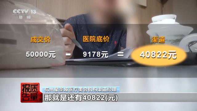 杭州星圣娅医疗美容机构渠道经理:9178 元的费用,这是医院一个底价,以外的就是不管报多少,报 5 万还好,你假如说,顾客成交价是 5 万块钱的一个鼻子,扣掉医院的这个 9178 元的成本。那就是还有 40822 元,这些全部都是你们的。